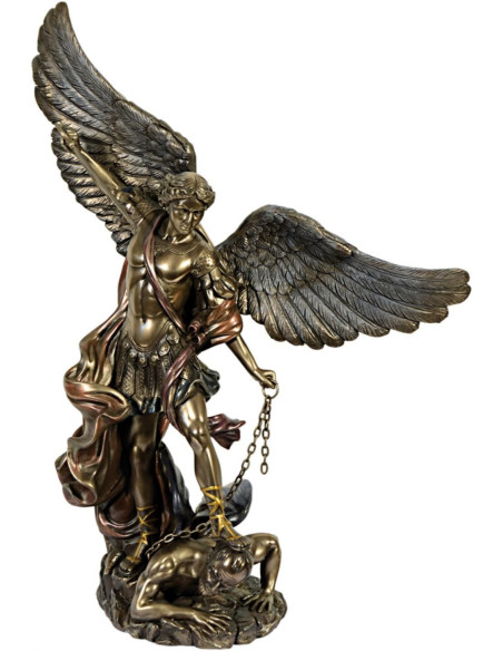 🌟 Símbolo de Protección y Justicia: Esta estatua del Arcángel San Miguel en bronce es un poderoso emblema de fuerza, justicia y protección. Con su espada en alto, simboliza su lucha contra las fuerzas oscuras.