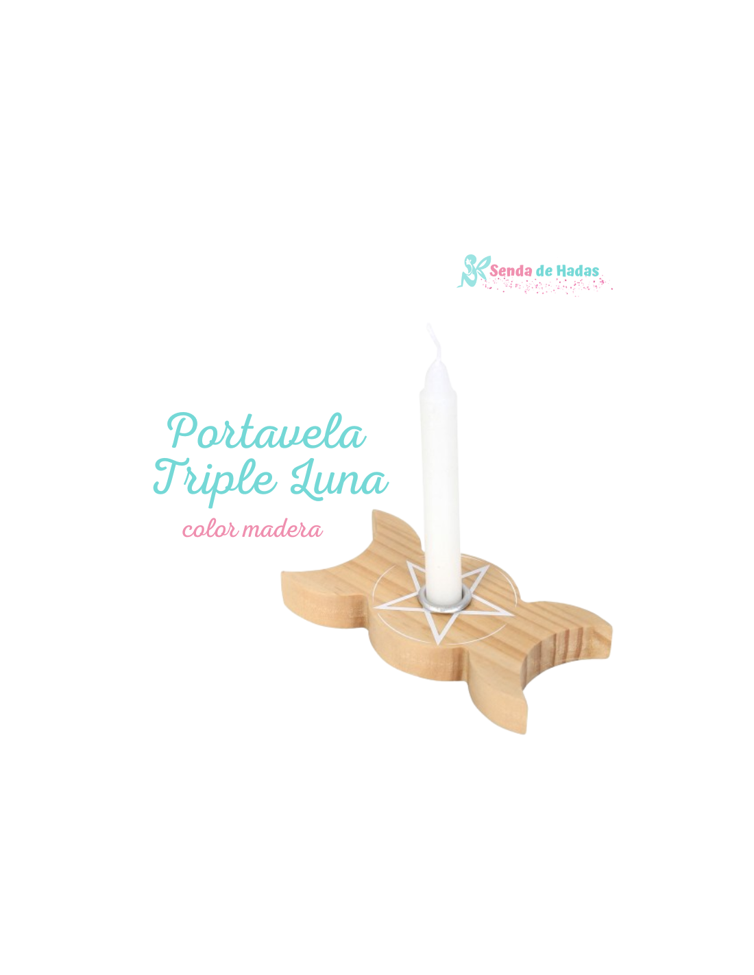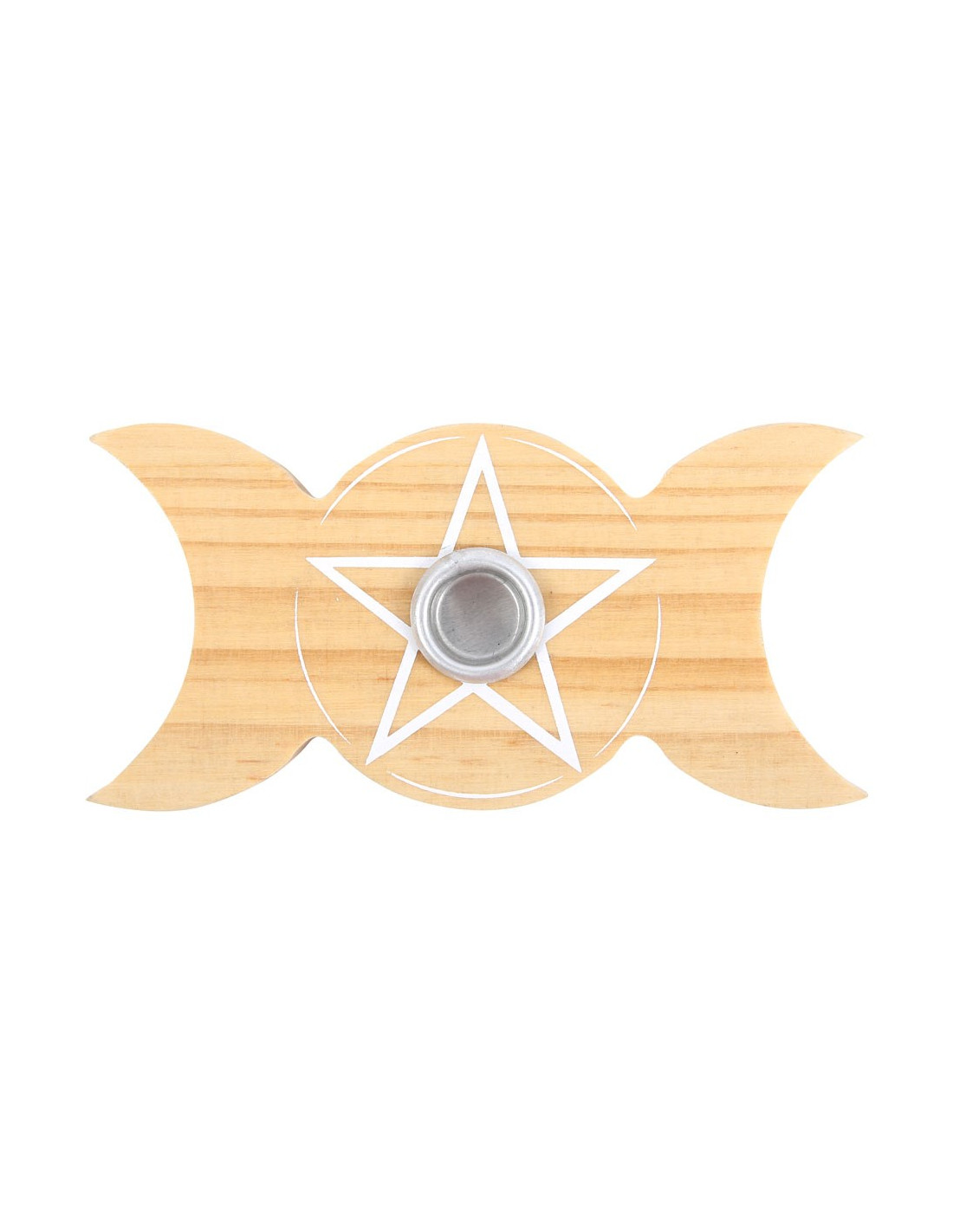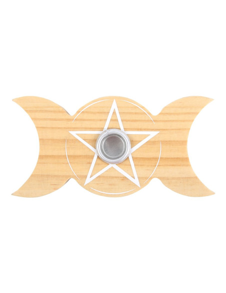 Porta vela en forma de Triple Luna, con pentagrama central.