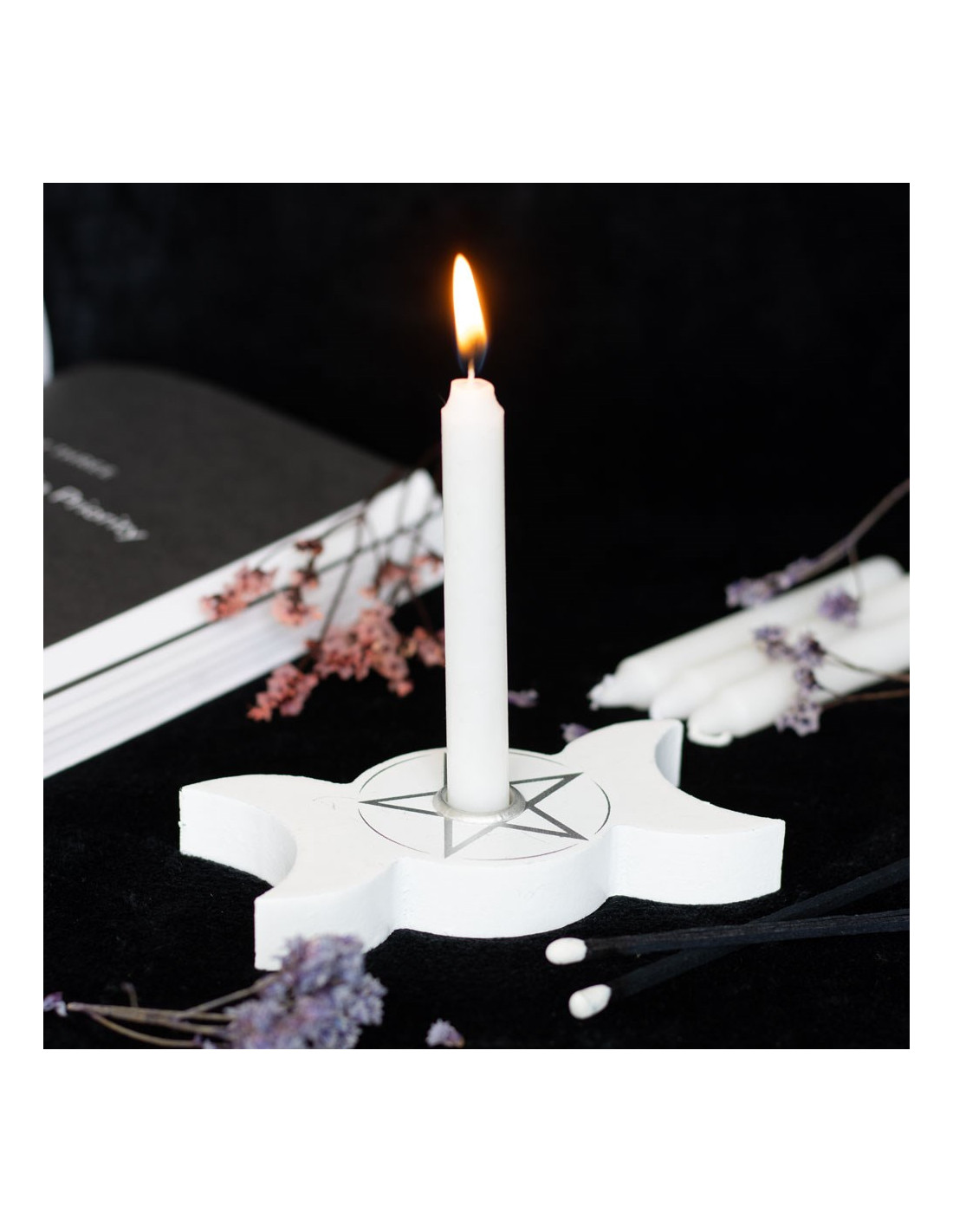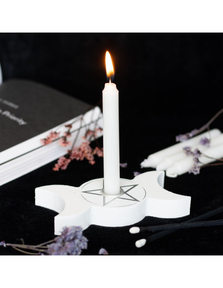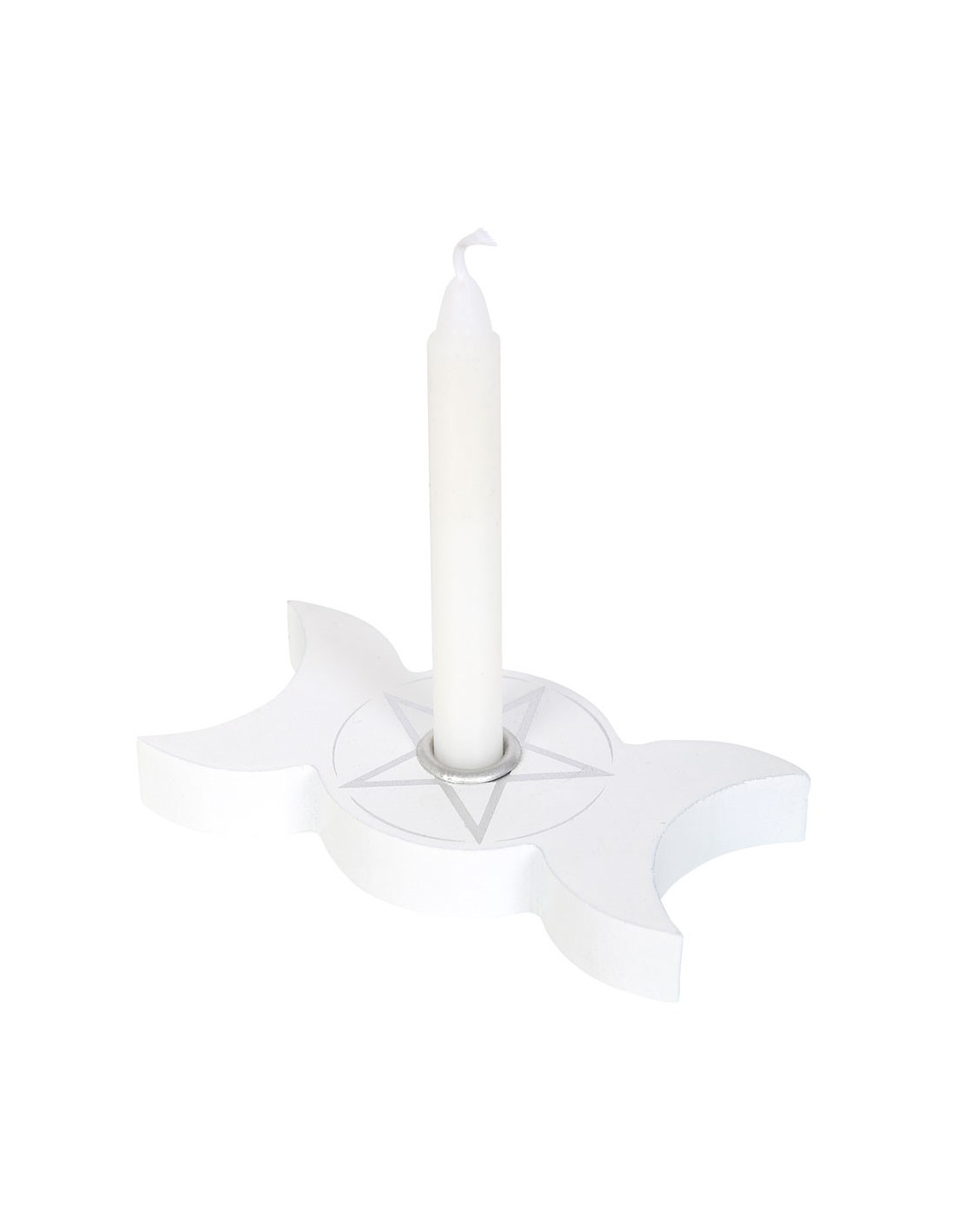 Porta vela en forma de Triple Luna, con pentagrama central.