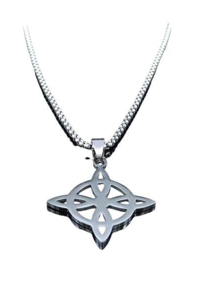 Este colgante representa el tradicional Nudo de Brujas, utilizado desde la antigüedad como amuleto de protección, energía y conexión espiritual. Su diseño entrelazado simboliza la unión de fuerzas y el equilibrio entre cuerpo, mente y espíritu.