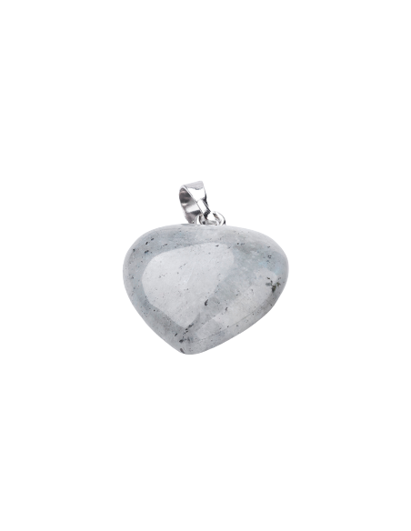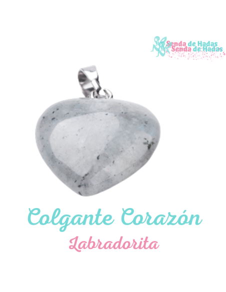 Precioso colgante en forma de corazón elaborado en Labradorita natural, una piedra que destaca por sus reflejos iridiscentes y se asocia con la protección energética, la intuición y el despertar espiritual.