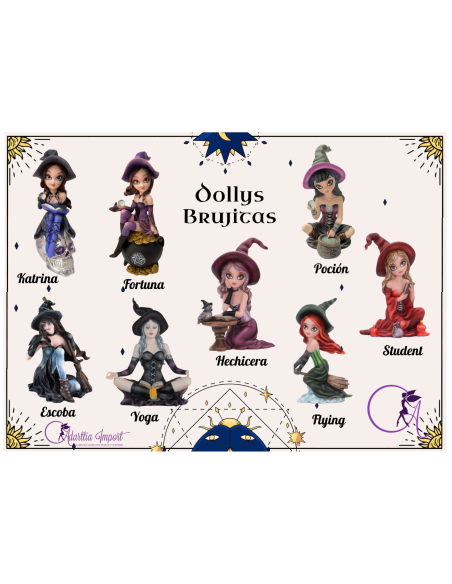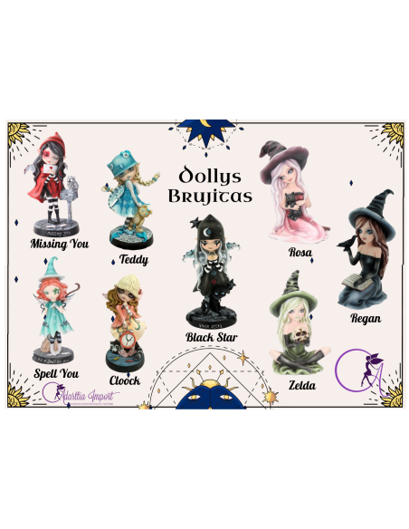 Descubre a Dolly Bruja Poción, una figura mística que encarna el poder de la magia y la adivinación. Con su caldero y una bola de cristal en la mano, esta bruja te invita a sumergirte en el mundo de los hechizos y la sabiduría oculta.