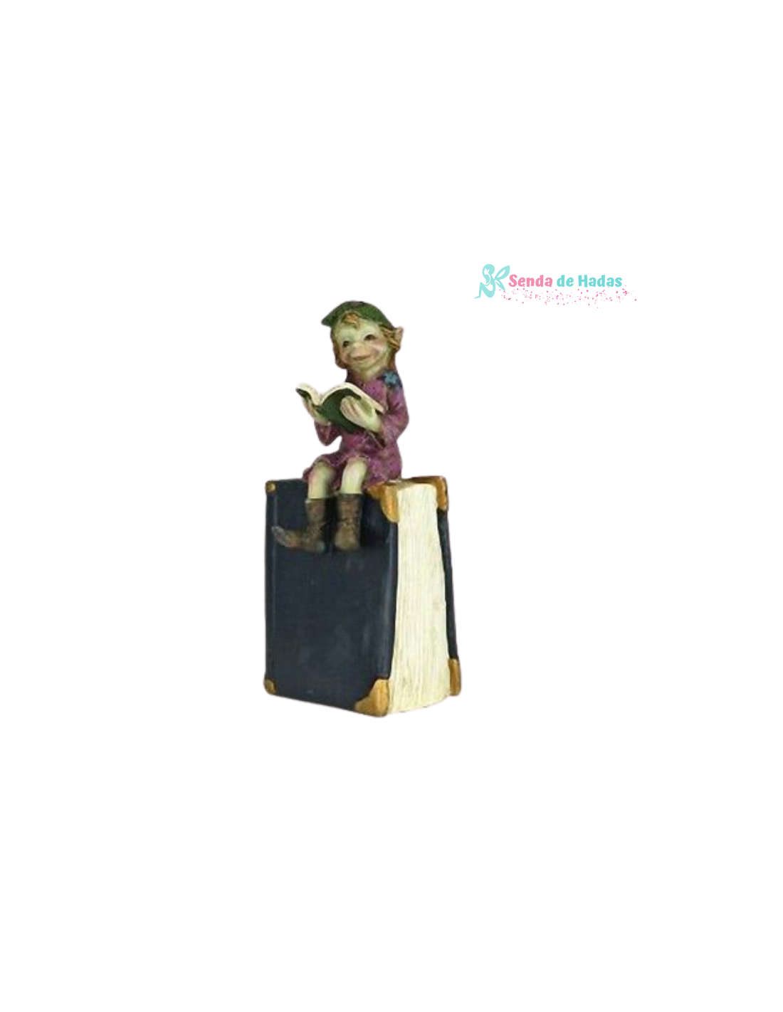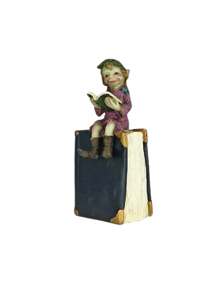 Este encantador duende, con su alegre postura sobre un gran libro, también cumple una función práctica como hucha, ¡perfecto para ahorrar con estilo!
