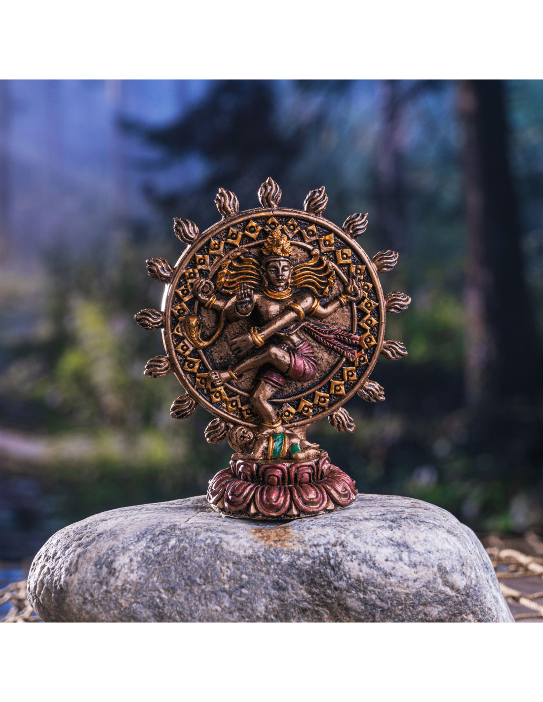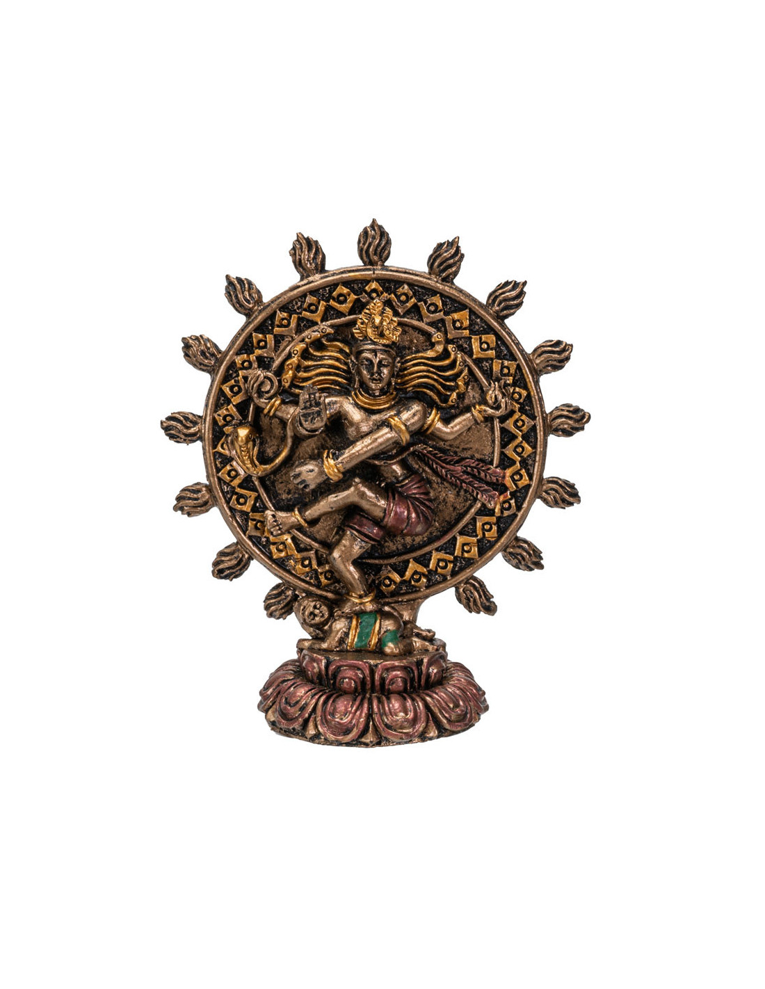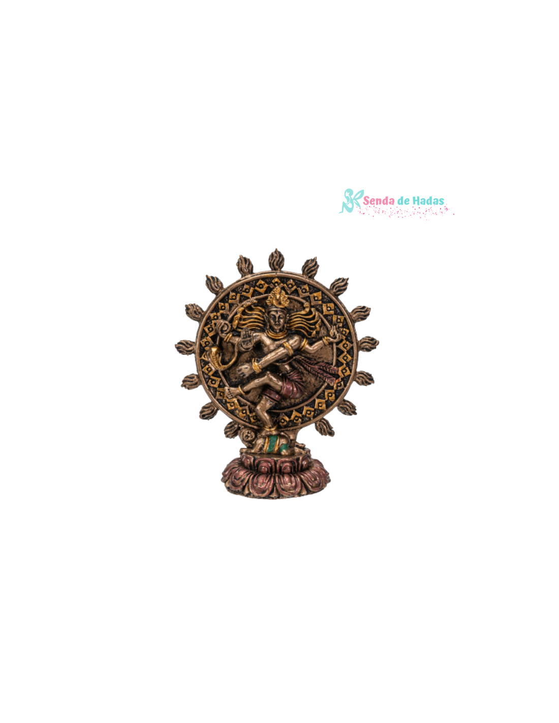 Esta figura representa a Shiva Nataraja, una de las manifestaciones más poderosas de Shiva como el "Señor de la Danza". Simboliza el ritmo eterno de la creación y la destrucción del universo, una danza cósmica que representa el ciclo de la vida.
