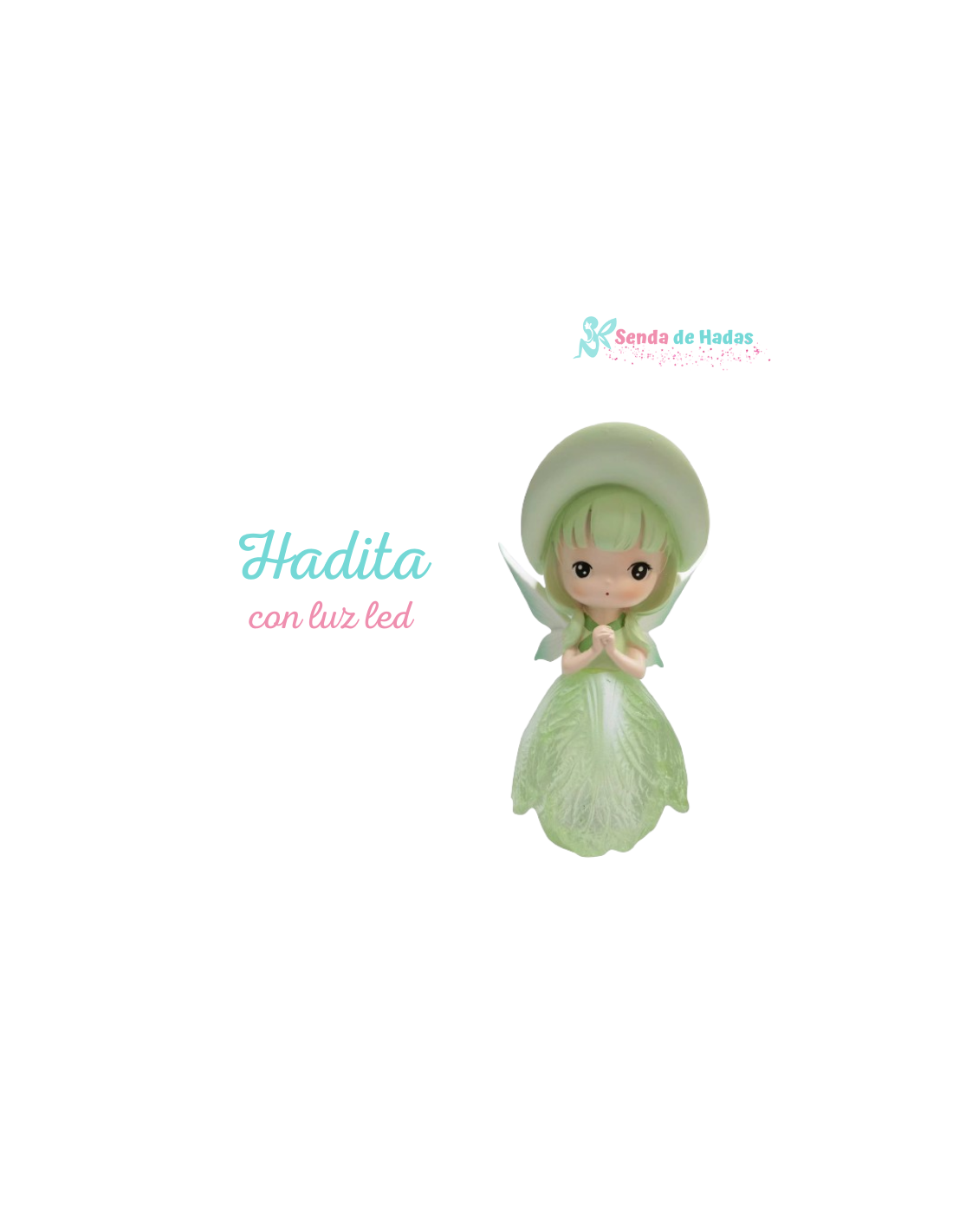 Esta hadita verde irradia una luz mágica gracias a su luz LED, creando un ambiente encantador y lleno de energía positiva. Con una delicada flor en forma de su faldita, simboliza el poder de la naturaleza, la renovación y la conexión con el ciclo de la vida. 🌱💚