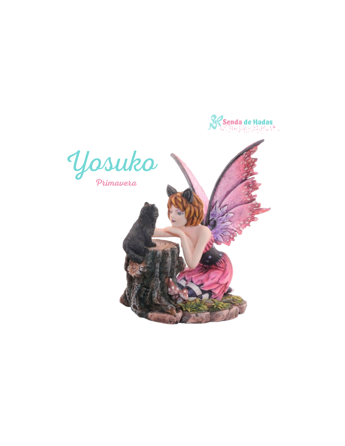 Misteriosa y encantadora, el Hada Yosuko combina la dulzura de las hadas con la agilidad y el espíritu libre de los gatos. Con sus adorables orejitas felinas y su fiel compañero gatuno, esta hada es símbolo de intuición, protección y magia ancestral.