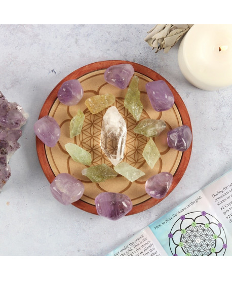 Incluye tres cristales seleccionados por sus propiedades armonizadoras y espirituales: