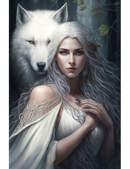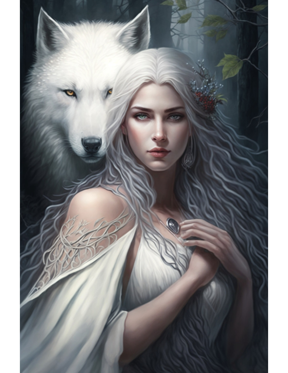 🌿 Conexión con la Naturaleza: El hada, con sus alas brillantes, y el lobo, símbolo de libertad y sabiduría, forman una imagen perfecta de armonía y fuerza.