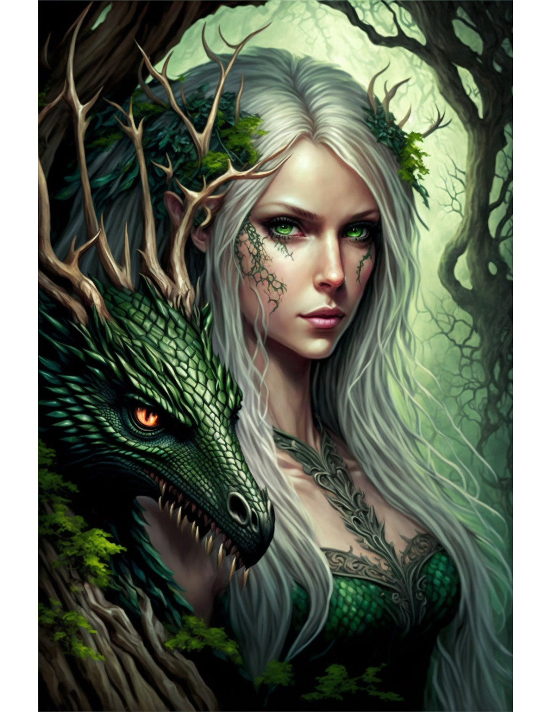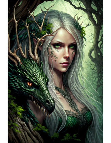 🌟 Transforma tu espacio con la magia de esta placa de pared que une la elegancia de un hada y la majestuosidad de un dragón verde. 🌙