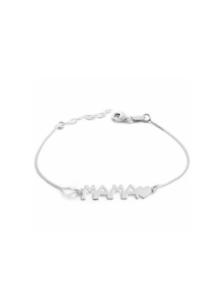Esta pulsera de Plata de Ley está diseñada con una elegante cadena de eslabones que lleva grabada la palabra "MAMA" junto a un corazón, un detalle perfecto para expresar todo tu amor y gratitud.