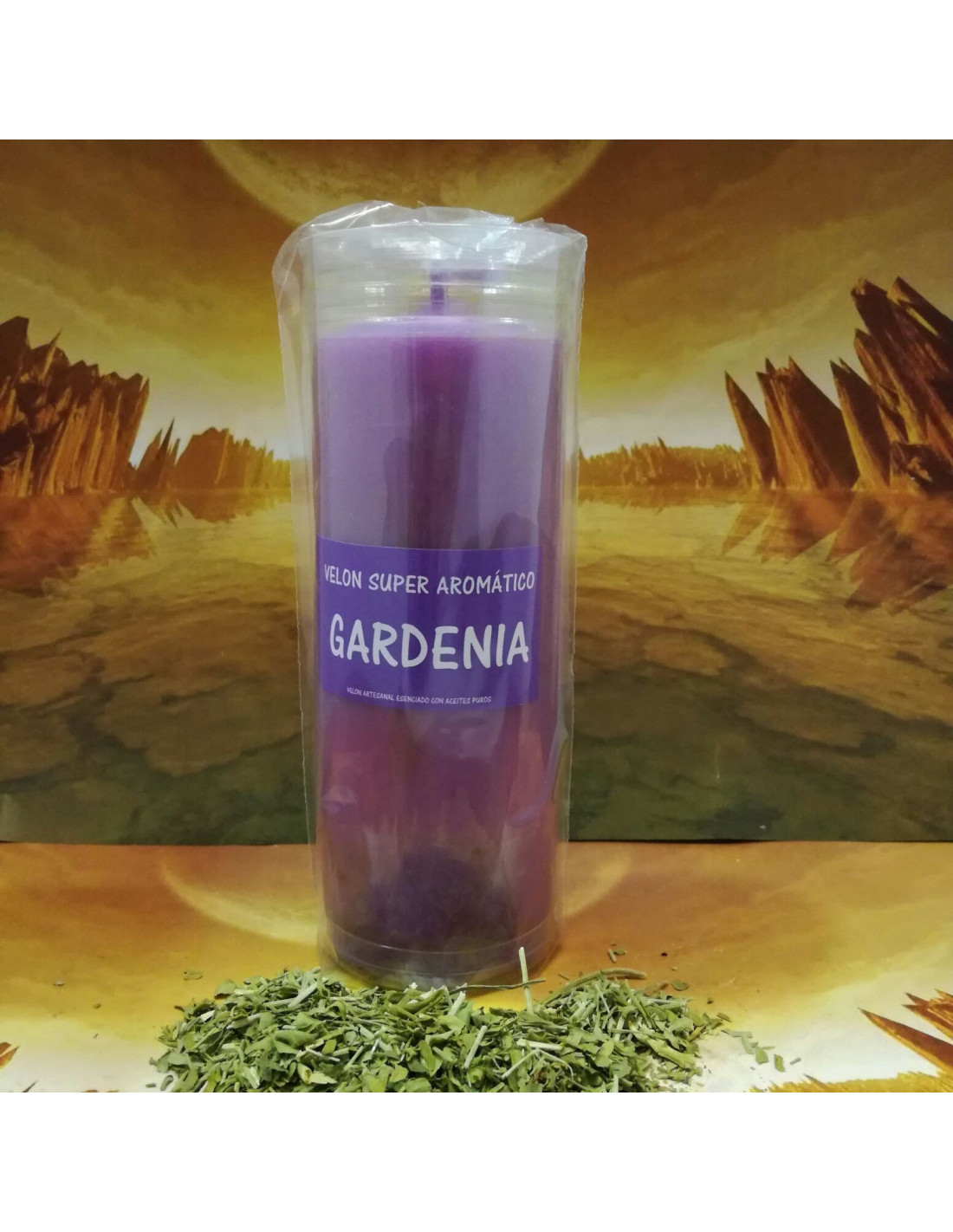 Velón aromático con aroma a gardenias.