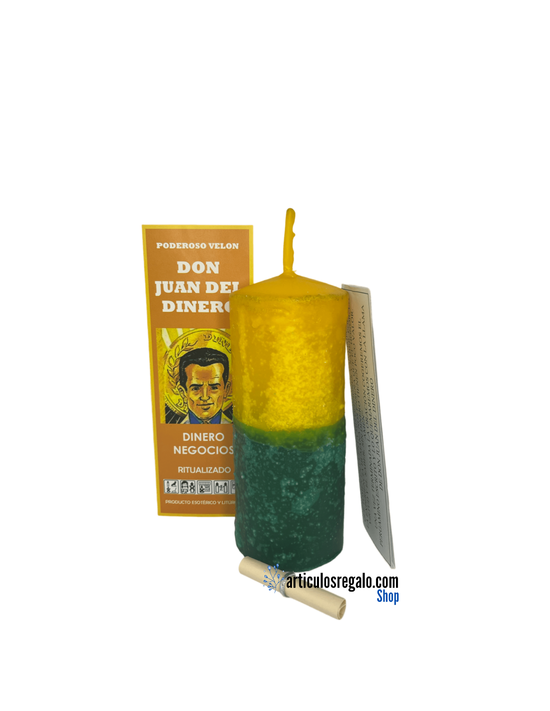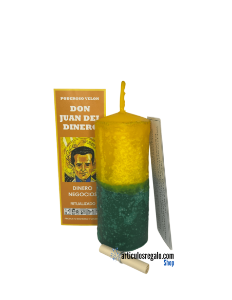 Velón preparado Juan del Dinero, utilizado para peticiones relacionadas con el factor económico.